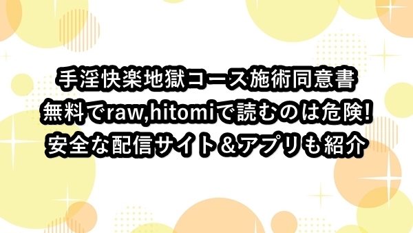 手淫快楽地獄コース施術同意書をraw,hitomiで読むのは危険!無料で試し読みできる安全な配信サイト&アプリも紹介