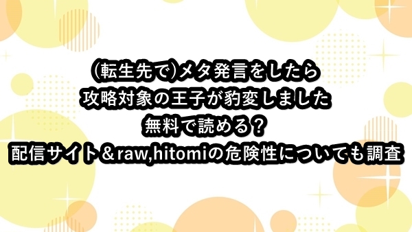 (転生先で)メタ発言をしたら攻略対象の王子が豹変しましたは無料で読める?配信サイト&raw,hitomiの危険性についても調査