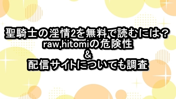 聖騎士の淫情2を無料で読むには?raw,hitomiの危険性&配信サイトについても調査