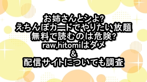 お姉さんとシよ?えちんぽカードでやりたい放題【湊ゆう】を無料で読むのは危険!raw,hitomiはダメ&配信サイトについても調査