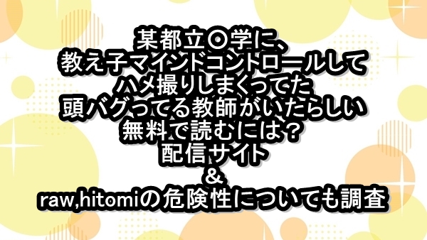 無料で某都立○学に、教え子マインドコントロールしてハメ撮りしまくってた頭バグってる教師がいたらしい【たいぷはてな】を試し読み&ネタバレ!最安値470円で読めるraw&hitomi以外の安全なサイトも紹介!