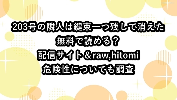 203号の隣人は鍵束一つ残して消えたは無料で読める?配信サイト&raw,hitomiの危険性についても調査