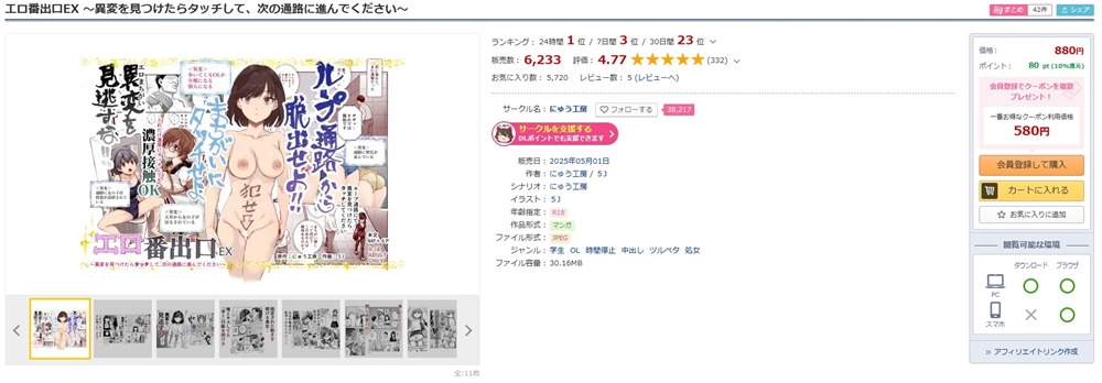 『エロ番出口EX』をほぼ無料、少しでも安くで読むならDLsiteがおすすめ!