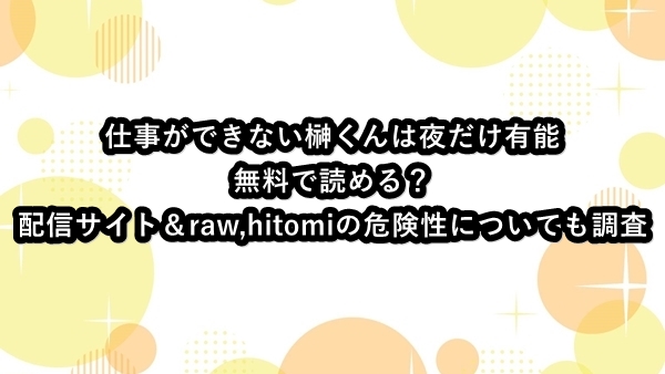 続・仕事ができない榊くんは夜だけ有能は無料で読める?配信サイト&raw,hitomiの危険性についても調査