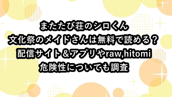 またたび荘のシロくん-文化祭のメイドさんは無料で読める?配信サイト&アプリやraw,hitomiの危険性についても調査