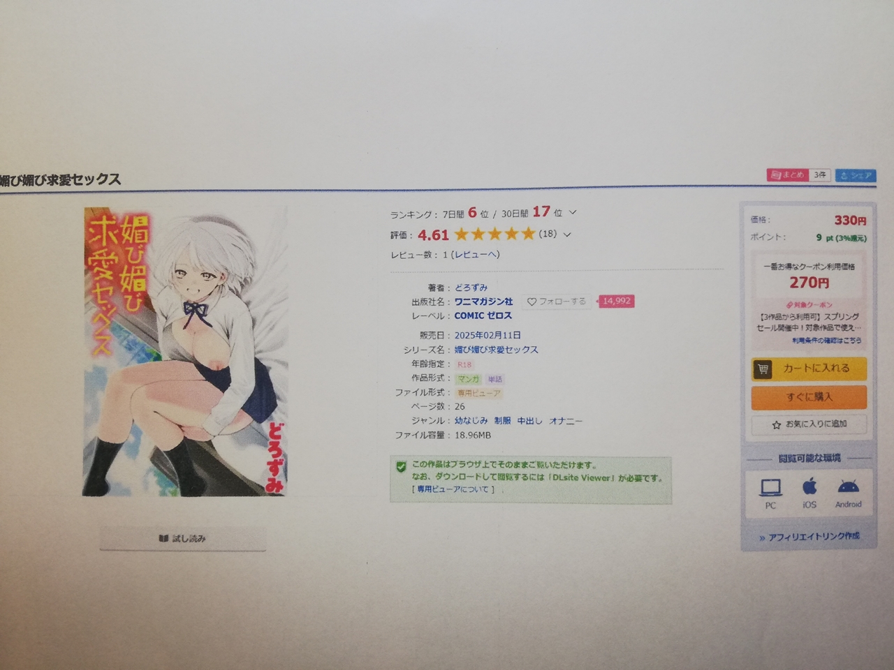 『媚び媚び求愛セックス』をほぼ無料、少しでも安くで読むならDLsiteがおすすめ!
