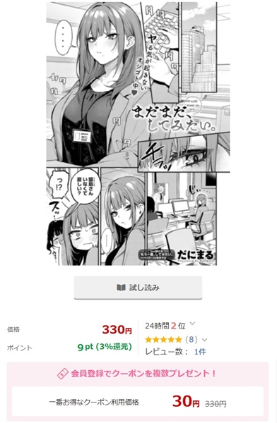 まだまだ、してみたい。みたいな単話作品だと、実質マンガ1本タダになります。