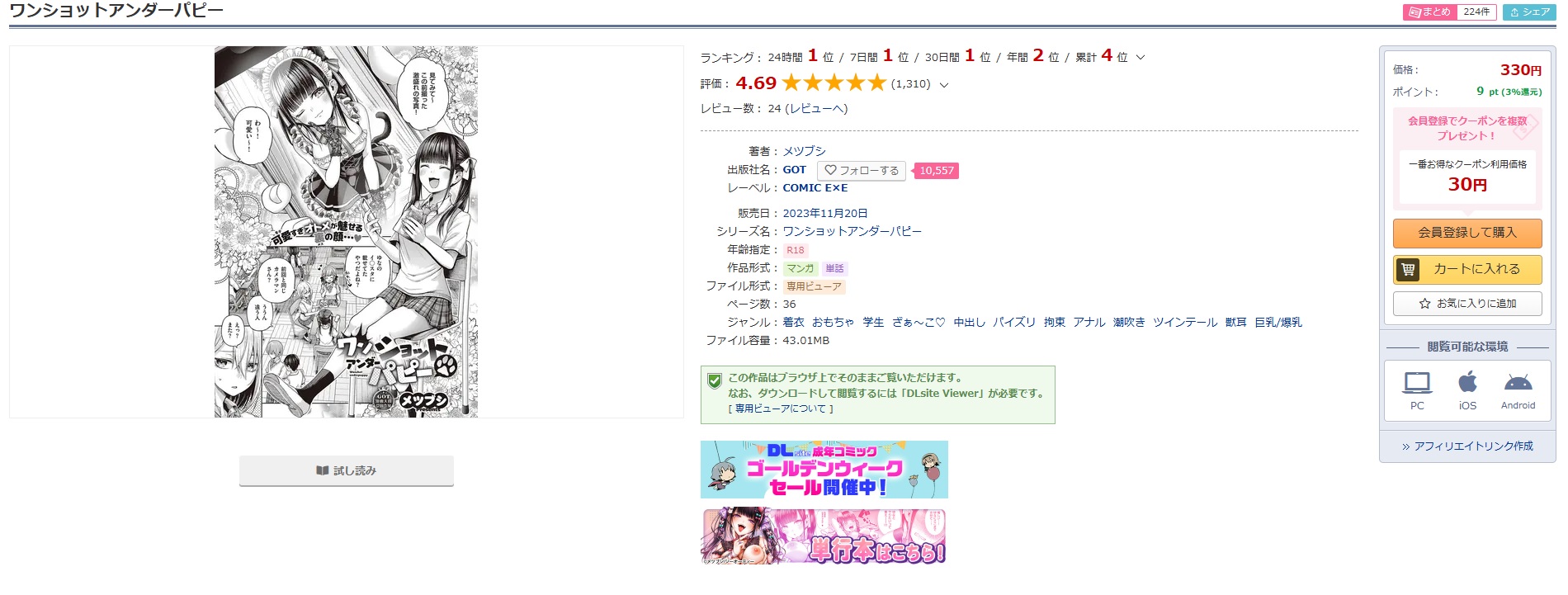 ワンショットアンダーパピーをほぼ無料・タダで読むならDLsiteで!