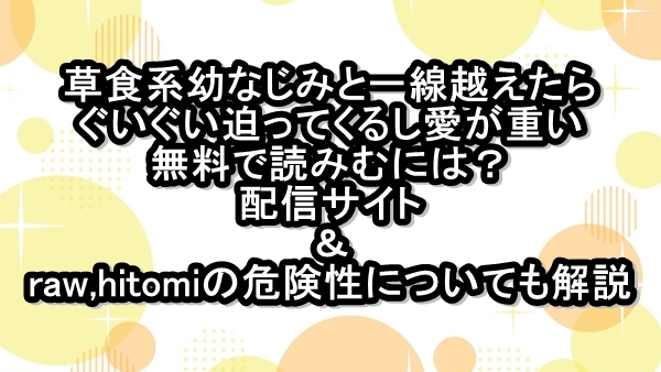 草食系幼なじみと一線越えたらぐいぐい迫ってくるし愛が重いを無料で読むには?配信サイト&raw,hitomiの危険性についても解説