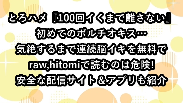 とろハメ『100回イくまで離さない』初めてのポルチオキス…気絶するまで連続脳イキを無料でraw,hitomiで読むのは危険!安全な配信サイト&アプリも紹介
