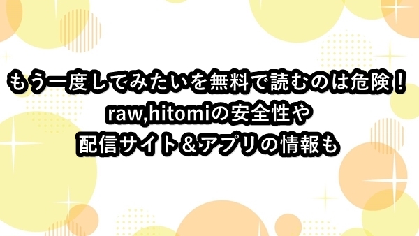 もう一度してみたいを無料で読むのは危険?raw,hitomiの安全性や配信サイト&アプリの情報も
