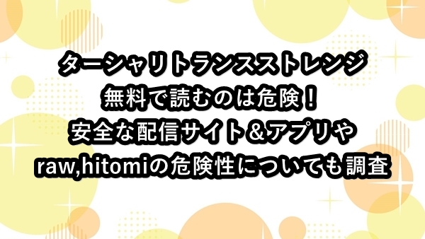 ターシャリトランスストレンジを無料で読むのは危険!安全な配信サイト&アプリやraw,hitomiの危険性についても調査