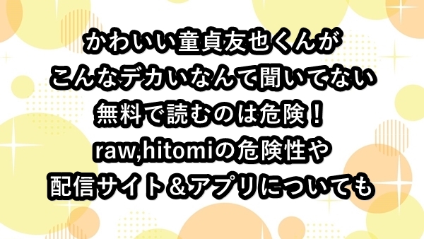 かわいい童貞友也くんがこんなデカいなんて聞いてないを無料で読むのは危険!raw,hitomiの安全性や配信サイト&アプリについても