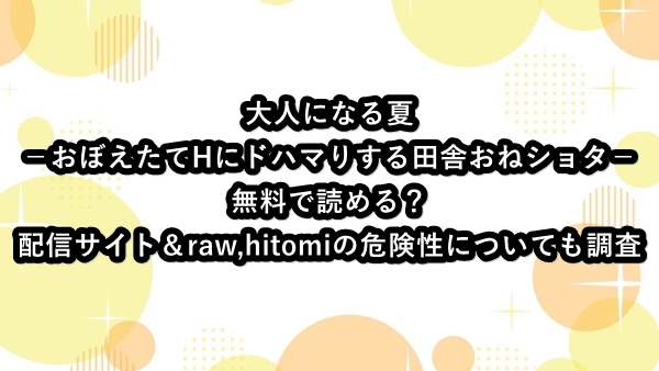大人になる夏は無料で読める?配信サイト&raw,hitomiの危険性についても調査