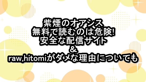 紫煙のオアシスを無料で読むのは危険!安全な配信サイト&raw,hitomiがダメな理由についても