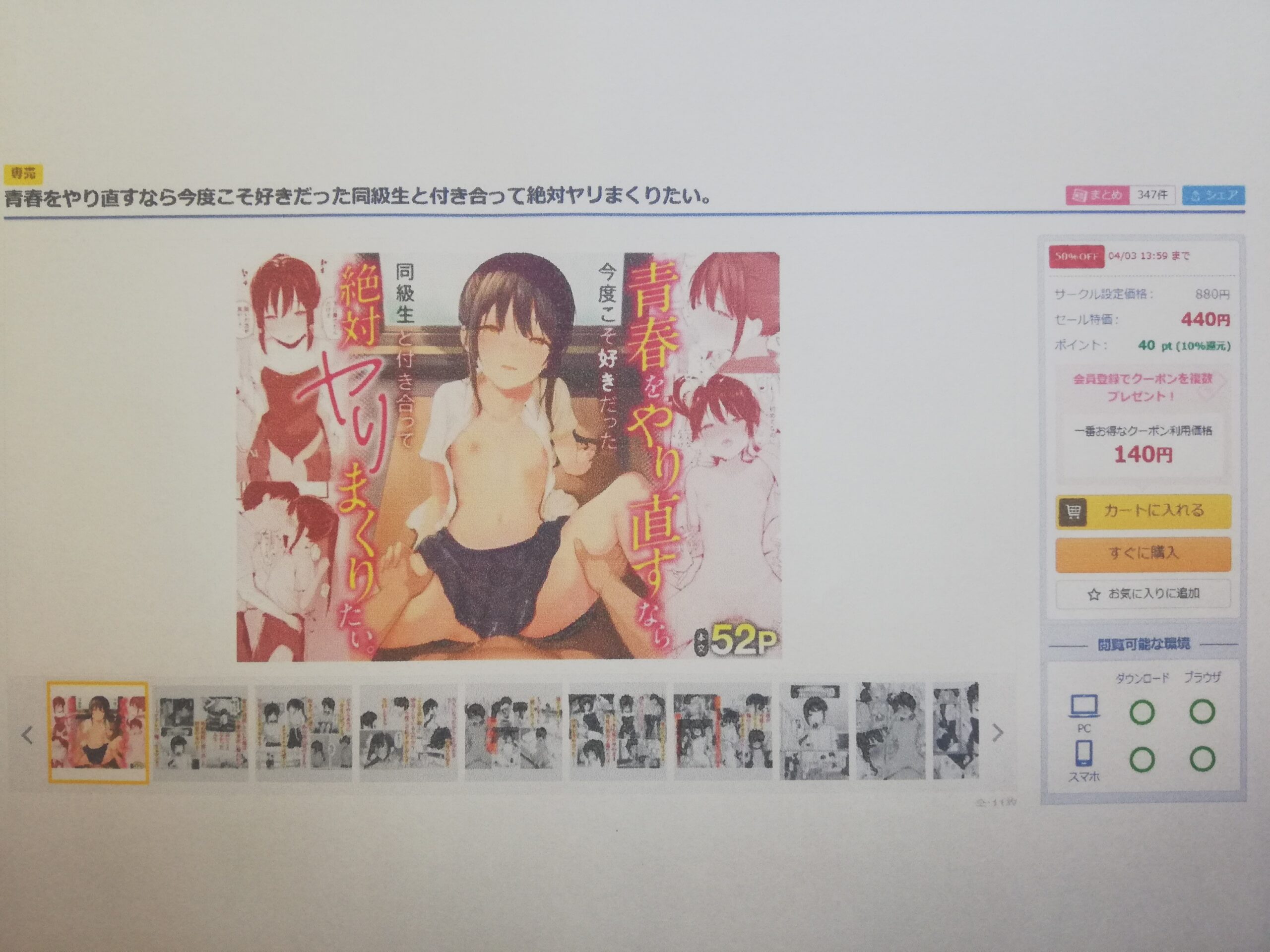 『青春をやり直すなら今度こそ好きだった同級生と付き合って絶対ヤリまくりたい。』みたいな同人作品だと、マンガ1本タダみたいな値段になることも。