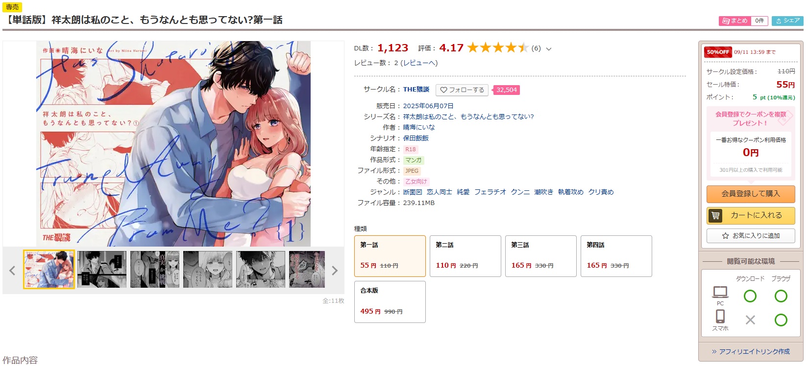 - 『祥太朗は私のこと、もうなんとも思ってない』を読むならDLsiteがおすすめ。音声作品やゲームに使えるクーポンも配布されているので、他の同人作品が欲しくなったときにもお得にお買い物できます。