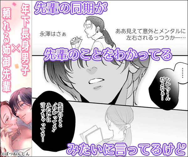 そんななか、先輩が職場で茅原さんにヘアゴムを貸したことから榊くんの嫉妬心が爆発。