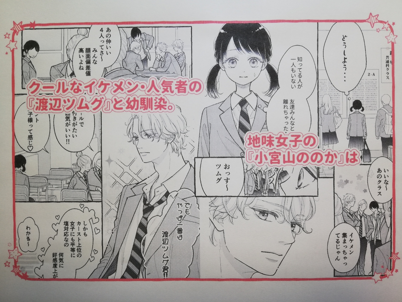 「私のことなんて誰も見てもいないよね」と卑下してたヒロインが、クラスの一軍男子に見初められるっていう、王道的シンデレラ系TL漫画。